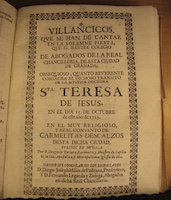 En la Biblioteca del Hospital Real de Granada, encontramos doce pliegos con los textos de los villancicos y cantadas que se interpretaron en la fiesta de Santa Teresa de Jesús (15 de octubre), la cual se celebraba anualmente en el convento de los Mártires (carmelitas descalzos), correspondientes a los años: 1717 (3 villancicos), 1720 (tres cantatas con violines), 1721 (3 villancicos), 1727 (3 villancicos), 1728 (3 villancicos), 1729 (3 villancicos), 1730 (3 villancicos), 1732 (3 villancicos más dos epigramas), 1735, (3 villancicos), 1738 (4 villancicos), 1739 (4 villancicos) y 1741 (4 villancicos, el primero incluye un “area de oboes”). Solo uno de los pliegos, el correspondiente a 1728, señala expresamente el compositor, del que puede deducirse la capilla musical que los cantó: “letras puestas en música por D. Antoni Navarro, maestro de capilla de la iglesia colegial de el Salvador de ella”.