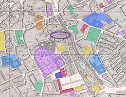 The confraternity of Santa Lucía, San Crispín and San Crispiniano, of the shoemakers' guild, had a street chapel on Abenámar street, with the image of the Virgin flanked by the saints Crispín and Crispiniano, in which they celebrated different Marian feast with a chapel of music that performed chanzonetas (secular songs) appropriate for the occasion.