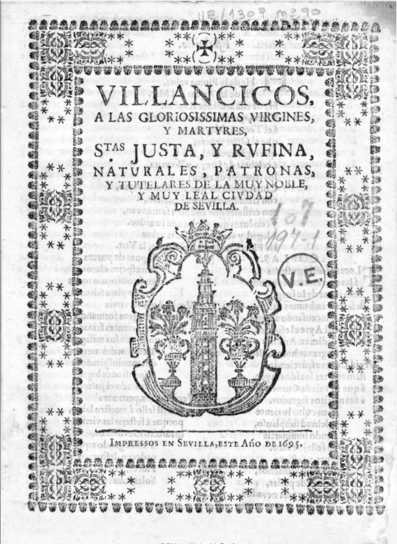 En la Biblioteca Nacional de España se han conservado tres pliegos de villancicos dedicados a las Santas Justa y Rufina, patronas de Sevilla, y vinculados a esta ciudad. El más temprano, del año 1695, contiene los siguientes villancicos: