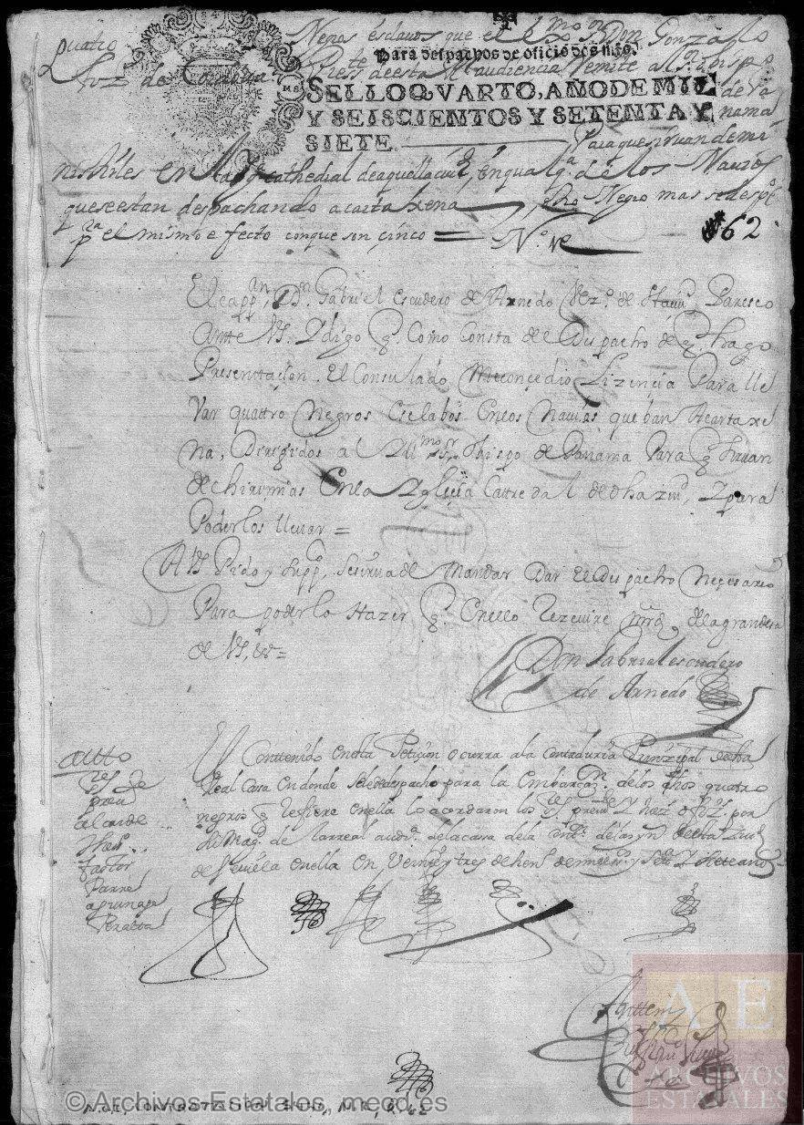 El quinto había llegado desde Lisboa. Según la descripción hecha en la Casa de Contratación de Sevilla, el 10 de abril de 1677, se llamaba Gonzalo Rodríguez: “de veinte y dos años, buen cuerpo, señal de herida sobre la ceja izquierda”.