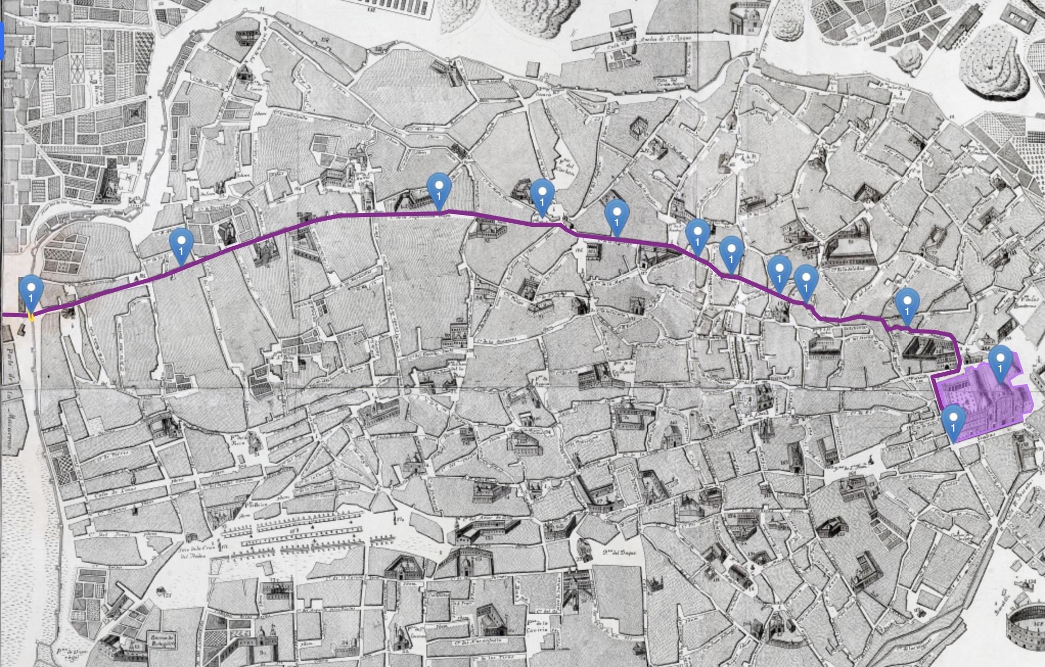 transitando en gran medida por la prolongación del cardo maximus de la ciudad romana que los llevaba a la catedral y