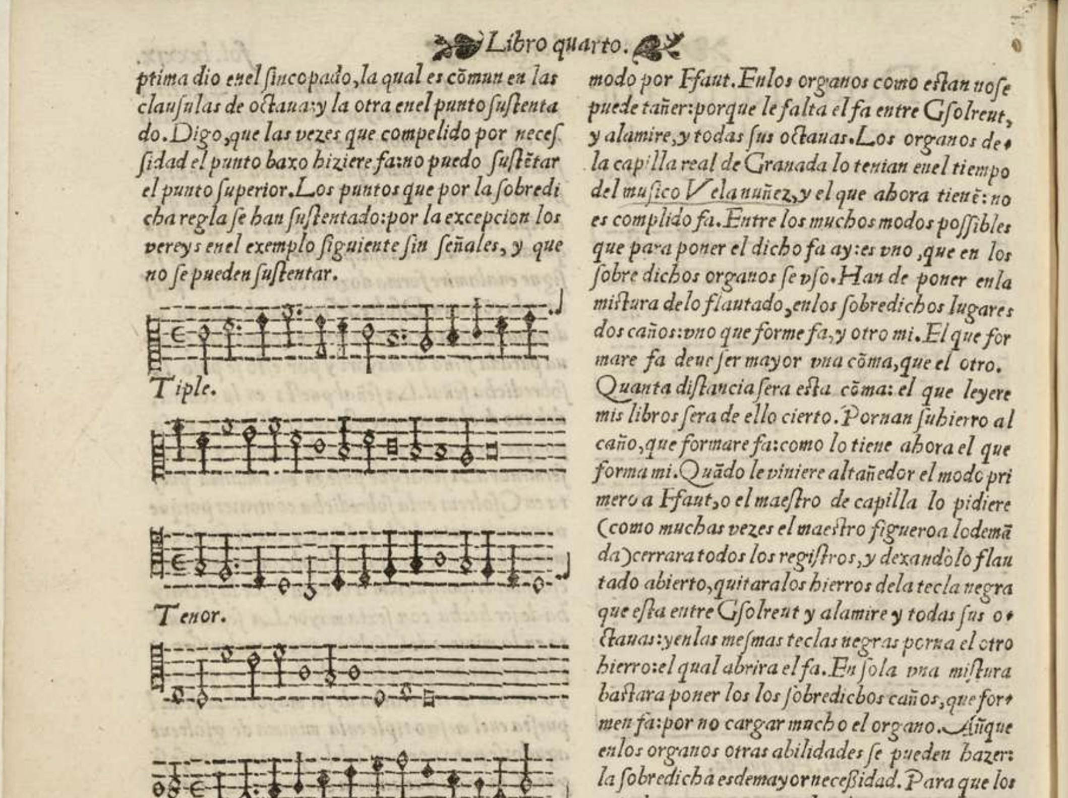 “Una de las grandes necesidades que los tañedores de capillas de canto de órgano tienen es tañer el modo primero por Ffaut... En los órganos como están no se pueden tañer, porque le falta el fa entre Gsolreut y alamire, y en todas sus octavas. Los órganos de la Capilla Real de Granada lo tenían en tiempo del músico Vela Núñez. Y el que ahora tienen no es cumplido fa”.
