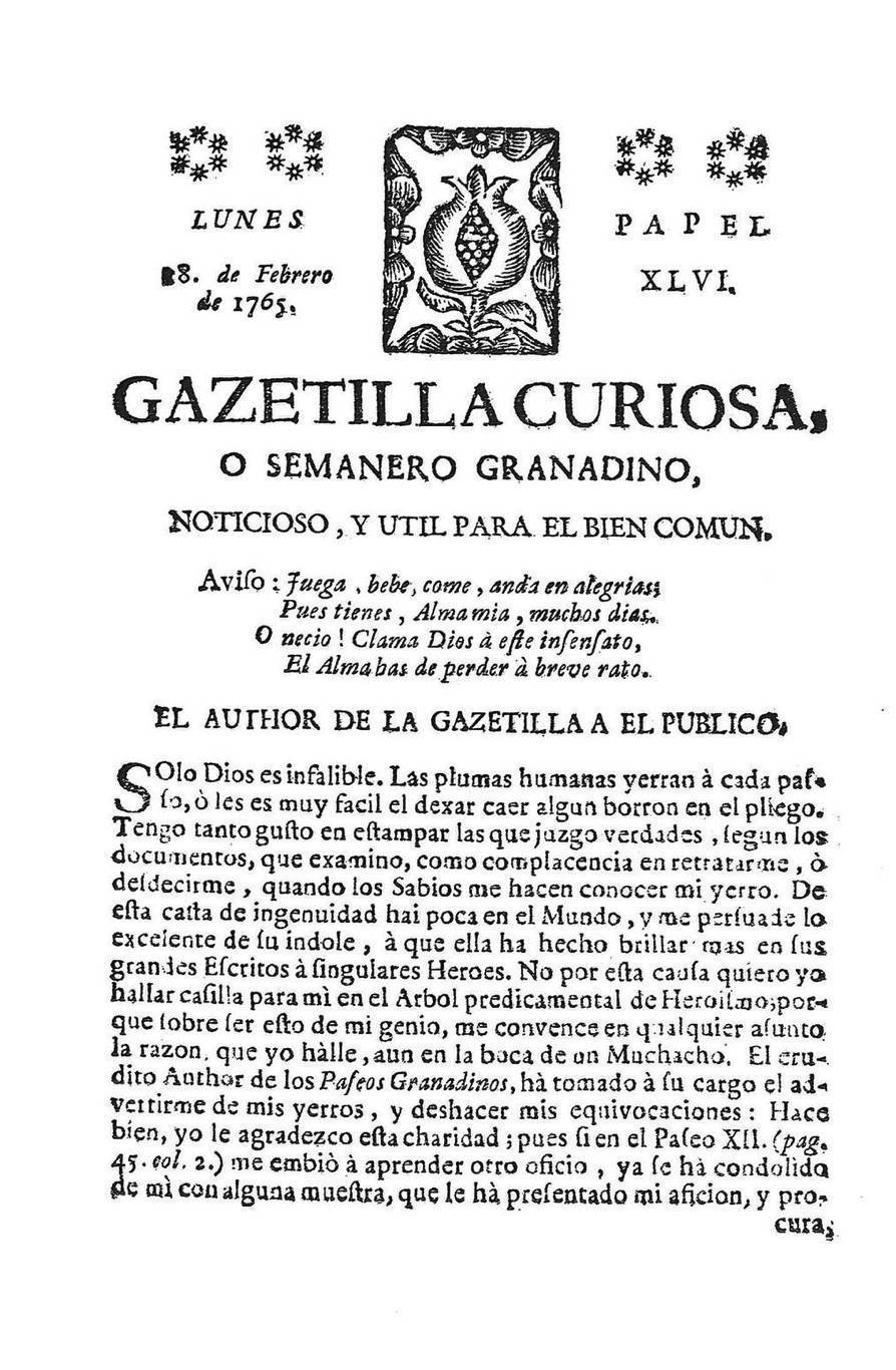 En la Gazetilla Curiosa o Semanario Granadino de 18 de febrero de 1765 (Papel XLVI) se recoge que el jubileo circular de las cuarenta horas se celebró desde ese día, lunes, hasta el jueves, “puesto el sol”, en el convento de la Trinidad, a cargo de la congregación del Dulce Nombre de María. El jubileo de las cuarenta horas consistía en tener expuesto cuarenta horas seguidas al Santísimo. Durante ese tiempo se sucedían una serie de rezos, sermones e interludios musicales, llamados “siestas”, en los que se interpretaban himnos, motetes, villancicos, etc. El adjetivo de “circular” hace referencia a la itinerancia celebrativa de este ritual a lo largo del año en los distintos templos de una ciudad que tenían concedido este privilegio, siempre a cargo de una determinada cofradía o hermandad. El que traemos a colación en este evento es particularmente significativo porque recoge la tradición de su celebración durante el carnaval, la cual encontramos en distintos lugares con similar motivación y que queda reflejada en la Gazetilla:
