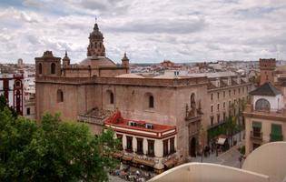 “Muy bien formada en cuadro y todo el espacio que hace frontera a sus entradas descubre un lienzo de edificio hermosísimo que toma las dos esquinas y su obra las casas del duque de Medina Sidonia, cuya portada y rostro está poblado de ventanaje muy en orden, a lo nuevo. Hace testero al dicho barrio la iglesia de San Miguel, opuesta y cercana al colegio, donde se combatieron dos castillos artificiosamente imitados y de muchos fuegos. Su traza era esta. Precediendo toda la tarde, hasta ya anochecido, el vistoso ejercicio y escaramuza de dos gallardas compañías de soldados, de más de quinientos hombres, mosqueteros y piqueros, que formando un escuadrón y acometiendo con destreza dieron muy buenas rociadas que alegraron la plaza, la cual, de esquina a esquina, delante de las casas del marques asistente, estuvo plantada de veinte árboles o pilares de madera y en lo alto de ellos otros tantos barriles de alquitrán. En las doce rejas del segundo orden de sus ventanas había veinte y cuatro hachas, interpoladas entre ellas y otro balcón grande más de doscientas luminarias y unos ministriles, cuya música alcanzaba correspondientemente a la del colegio y de la iglesia de San Miguel”.