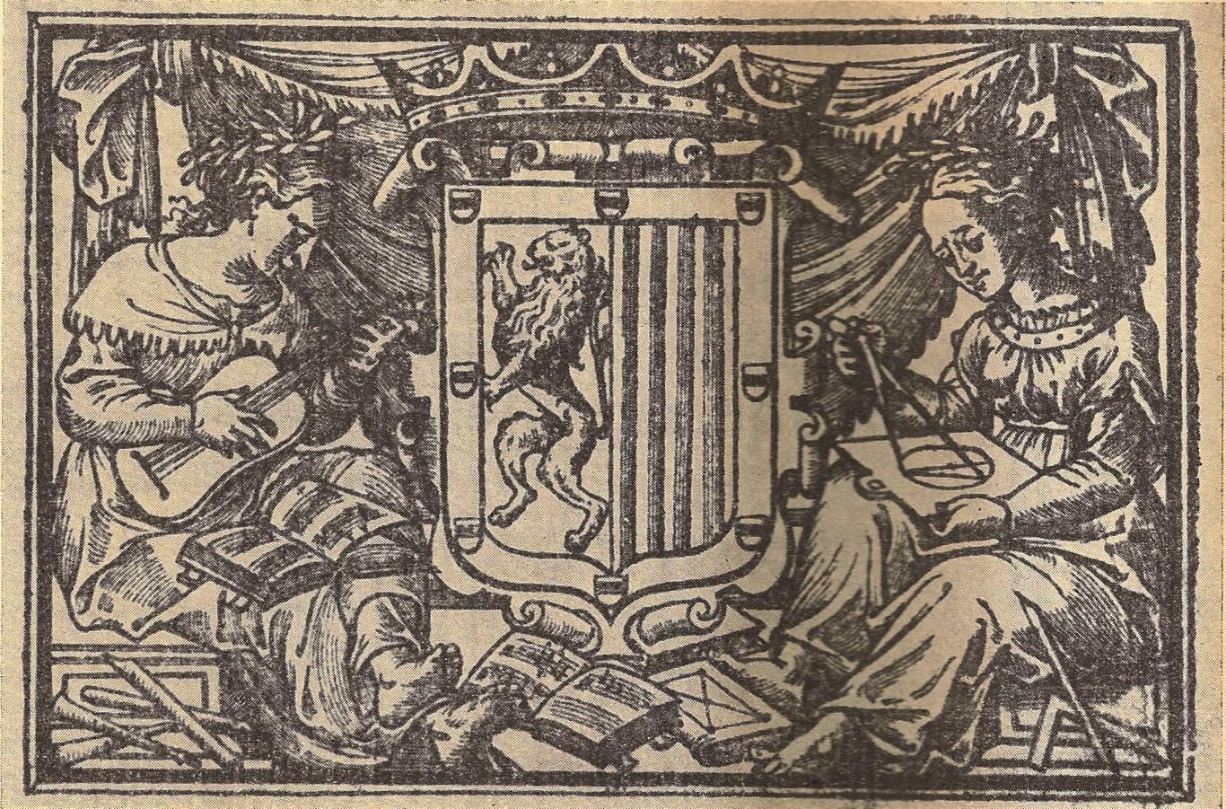 Uno de los grabados que encontramos en este impreso es de especial interés, ya que, a la derecha del escudo de los Ponce de León, se encuentra una figura femenina que personifica la Música tañendo una guitarra en la que claramente se aprecian los cuatro órdenes, el primero de ellos sencillo, como era habitual. Resulta curioso que no se eligiera para este grabado una vihuela, más acorde para una posible interpretación instrumental del repertorio del impreso, así como que la mujer esté tañendo de un volumen con la distribución usual que presentan las voces en un libro de polifonía, tal y como sabemos que podían hacer los excelentes tañedores de órgano y que presenta una considerable dificultad. A los pies de esta figura hay otros dos libros, uno abierto por una obra a tres voces y el otro cerrado. En la esquina inferior izquierda se pueden apreciar, al menos, dos flautas dulces y dos dulzainas (ver recurso).