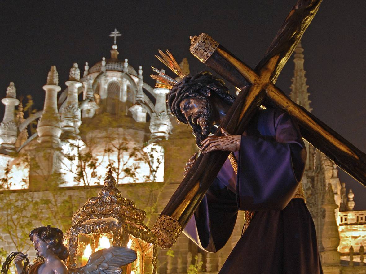 Otrosí ordenamos que en la procesión del Jueves Santo de disciplina se lleve al principio de ella la campanilla de la cofradía la cual es del muñidor y él la pueda dar a quien quisiere para este día. Ítem, más veinte y cuatro niños de la doctrina con su cruz. Ítem, un estandarte negro con su cruz colorada y le acompañen seis bastoneros el cual lleve nuestro escribano de cabildo y por su ausencia al de penas y luego se lleve un calvario con su cruz y al medio lleven un Cristo con su cruz a cuestas que se titule Jesús Nazareno del Gran Poder Santísimo y luego se saque la imagen de Nuestra Señora del Traspaso con San Juan y a la postre un Cristo Crucificado y en medio de la procesión lleven música de cantores o veinte y cuatro clérigos de misa lo que más convenga y a nuestros alcaldes y mayordomo les pareciere. Y asimismo vayan en la procesión dos trompetas que sean muy buenas y dos canastillas en que se coja la cera y las demandas que fueren necesarias y todo lo que fuere de menester gastar para este día sea de la cofradía y han de ser obligados a andar cinco estaciones las que los alcaldes les pareciere con tal que sea la una la iglesia Mayor y que la cera que se gastare este día sea blanca so las penas de la dicha cofradía”.