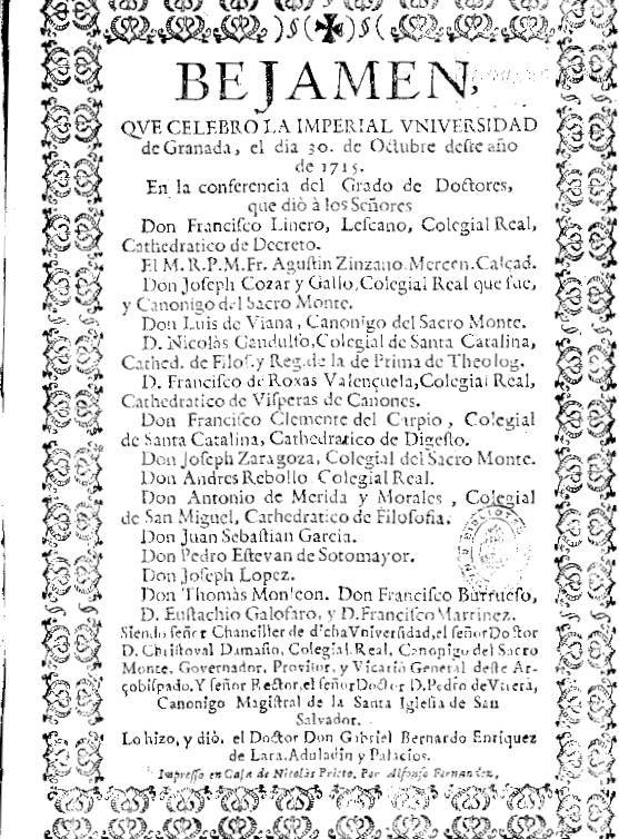 Vejamen in the examination for university degree in the Imperial University of Granada (1715)