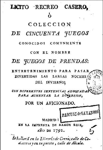 La música, de una forma u otra, en canciones e imitaciones vocales e instrumentales está presente en mucho de estos juegos de prendas dieciochescos, como puede leerse en el Lícito recreo casero o colección de cincuenta juegos conocidos comúnmente con el nombre de juegos de prendas: entretenimiento para pasar divertidas las largas noches de invierno... por un aficionado. Madrid, imprenta de Ramón Ruiz, 1792.