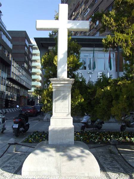 “En este año los vecinos devotos de la Santa Cruz del barrio del señor San Lázaro de la ciudad de Granada, collación del señor San Ildefonso, mandaron hacer y poner una santísima cruz de piedra de alabastro blanco de mucha costa, en medio del campo del dicho barrio, con las limosnas que para ello juntaron, siendo mayordomo y comisario de la dicha obra Fernando Sánchez, capataz de la casa de la Moneda y vecino de dicho barrio y habiéndose acabado de levantar para el día de la Invención de la Cruz a tres de mayo deste dicho año le celebraron grandísima fiesta en la iglesia parroquial del señor San Ildefonso, con una gran procesión, danzas y soldadesca y otros aderezos de altares en que se gastó mucho”.