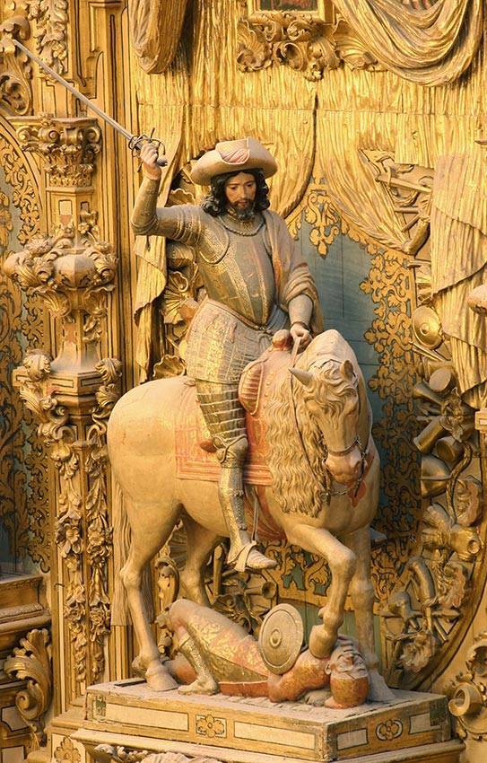 No sabemos qué imagen del apóstol Santiago procesionó ese día, pero con estas victorias y dotaciones puede relacionarse la monumental escultura de Santiago matamoros que preside el retablo de Santiago de la catedral de Granada. Fue encargada a Alonso de Mena en 1640 y en su peana lleva la inscripción: “Esta memoria de la gloriosa vitoria que con su patrocinio alcanzaron las armas del Rey Nuestro Señor”.