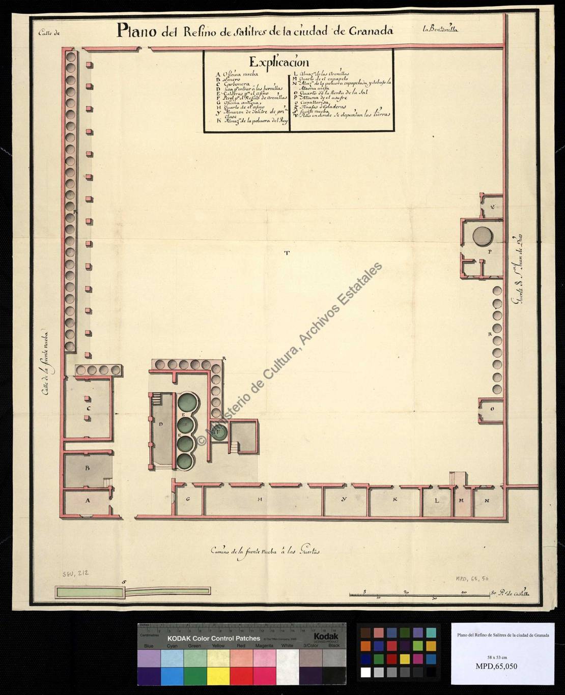 En el círculo donde se encuentra el caño central hay otra inscripción que hace alusión a las “Reales fábricas de salitres y pólvoras de Don Miguel Sabino Acosta” y que está relacionada con la ubicación en la que se encontraba.