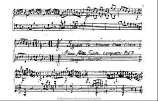 Sonatas, minuetes y rondós para órgano y claves, su autor don Joaquín Montero, organista en la Real Iglesia de San Pedro, se hallarán en la librería e imprenta de este periódico. Asimismo se dará noticia de un sugeto que vende algunas oberturas y tríos manuscritos y de buenos autores, con equidad”.