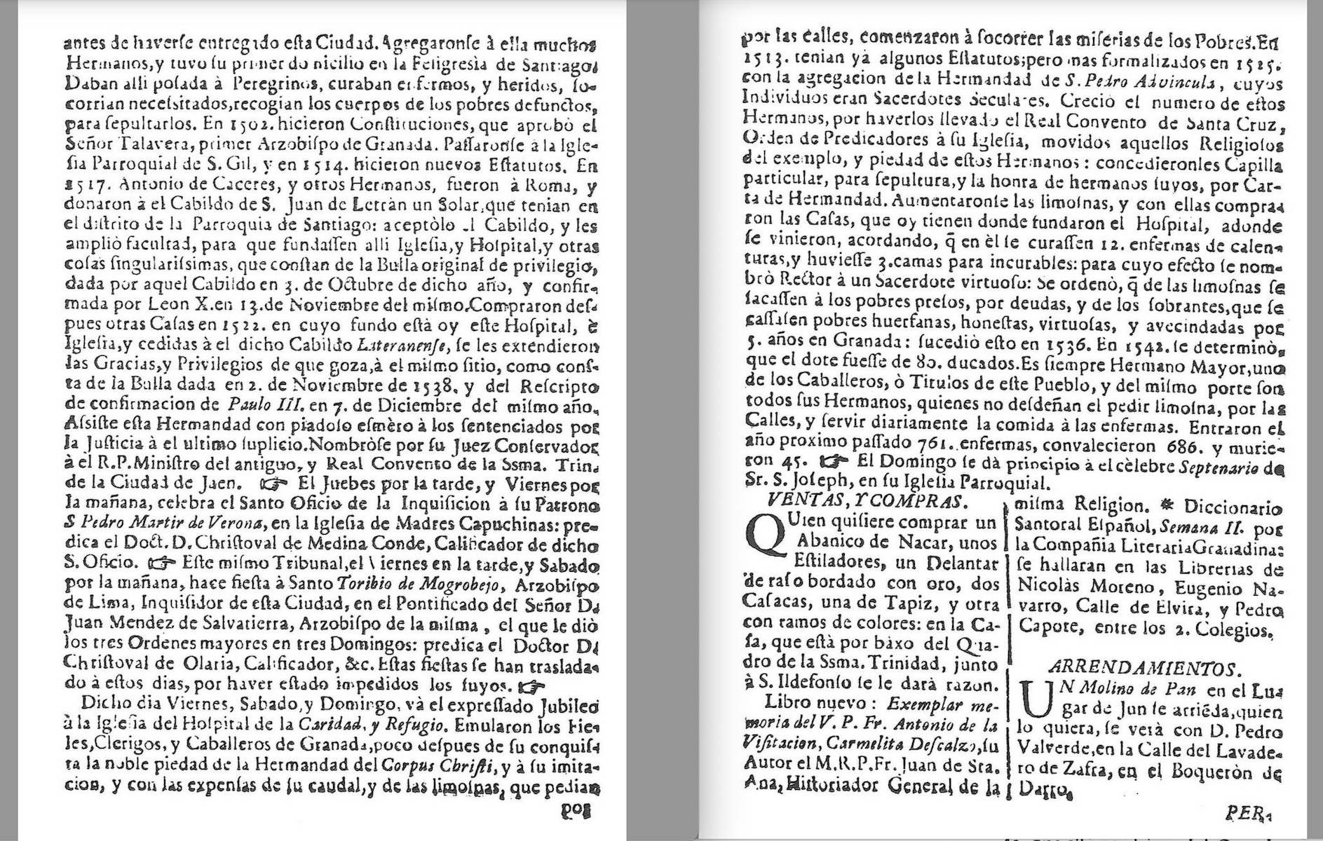 Antonio de la Chica Benavides, en su Gazetilla curiosa o Semanario granadino (Papel V, 7 de mayo de 1764, y XXIII, ), confirma algunos de los datos ya apuntados sobre esta hermandad de la Caridad y Refugio y precisa otros detalles sobre la atención hospitalaria (véase recurso).