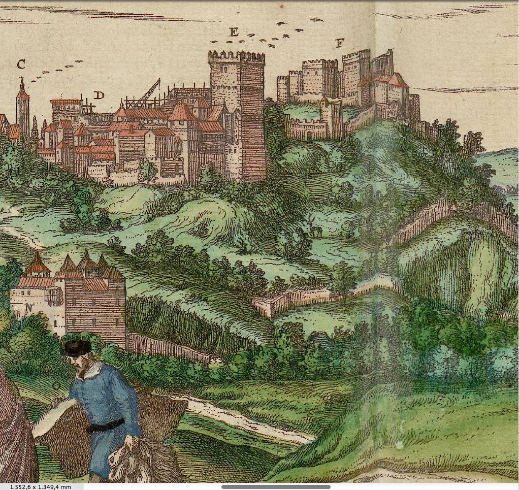 El bosque que rodea a la Alhambra ha experimentado drásticas transformaciones en su flora y fauna a lo largo de la historia que, evidentemente, han afectado a su particular paisaje sonoro, en el que los sonidos del agua, los pájaros y los anfibios parecen haber sido una constante hasta nuestros días. La diferencia más notable se encuentra en la presencia de caza mayor hasta, al menos, el siglo XVII: ciervos, jabalíes e incluso, probablemente, algún ejemplar de oso y lobo que pudieran hacer en ellos incursiones esporádicas. En 1499, el rey Fernando prohibió la caza del oso, jabalí y ciervo en las montañas que rodeaban Granada. Contamos con suficientes testimonios para suponer que existía en el bosque de la Alhambra una especie de parque real en el que una serie de animales de caza vivían en relativa libertad. Este parque es denominado bosque de la Alhambra (véase la plataforma de Ambrosio de Vico) y se extendía por la colina del recinto hacia el valle del río Darro, en una extensión acotada por la torre de las Armas y la de los Picos. Sus límites precisos todavía son descrito con la denominación de “un bosque llamado de la Alhambra” en el Catastro del marques de la Ensenada (1752). En 1563, Joris Hoefnagel dibujaba una vista de “Granada desde el oriente” que se publicó en el vol. 5 del Civitatis orbis terrarum de Georg Braun y Franz Hogenberg (1598). En ella se aprecia este cercado, en cuyo interior podemos ver dibujados incluso dos ciervos, uno en pie y otro recostado (ver recurso). En la almoneda de los bienes del arzobispo Juan Méndez de Salvatierra (1588) encontramos el siguiente lote, adjudicado en 98 reales (3.332 maravedís): “Cinco ciervas que se compraron de la almoneda de arzobispo... para echarlas en el bosque de esta Alhambra”. Hay otros testimonios de la presencia de ciervos, jabalís y conejos en este cercado hasta mediados del siglo XVII. Otro elemento característico serían los falcónidos usados en la cetrería que sobrevolarían también estos bosques. En las cacerías encontramos dos nuevos elementos sonoros, en este caso sound signals. El primero es el de la trompeta natural que los ojeadores tocaban para ayudar en la montería y en la cetrería. El segundo el del pandero con el que, subidos a los árboles, espantarían a las aves que de este modo serían fácilmente localizadas por las rapaces. Ambos aparecen representados en una de las escenas de caza que puede verse en la bóveda norte de la Sala de los Reyes en la Alhambra (ver recurso). En la cetrería medieval, en ocasiones se ataban cascabeles a la cola de los halcones con el mismo objetivo. Pero López de Ayala, en el capítulo VIII de su Libro de la cetrería o de las aves de caza, nos deja un claro testimonio de esta práctica: