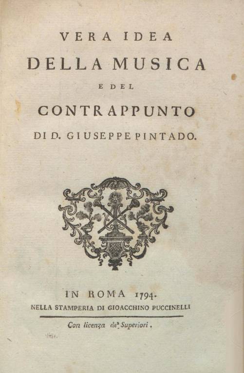 José [López] Pintado, grandson of Manuel López-Pintado Almonacid, 1st Marquis of Torreblanca, was born in Seville on 12 January 1741. He entered the Society of Jesus in 1755 and was one of the exiles in Italy when the Jesuits were expelled in 1767. In Rome he published his Vera idea della musica, e del contrapunto. He died in Seville on 1 October 1819.