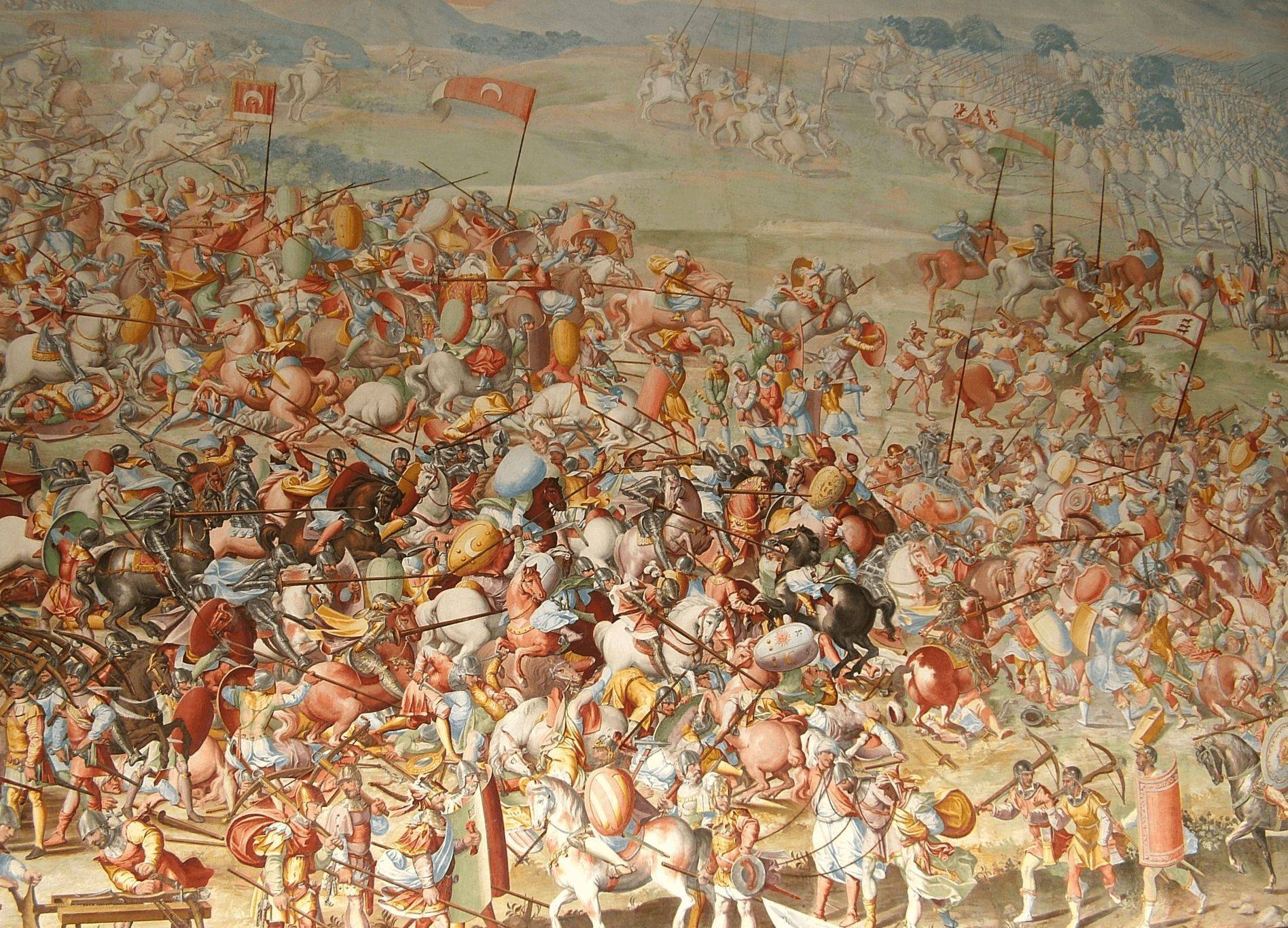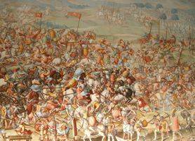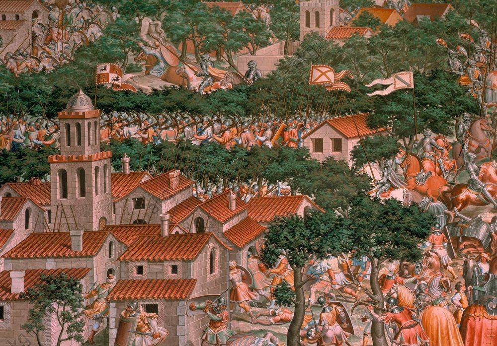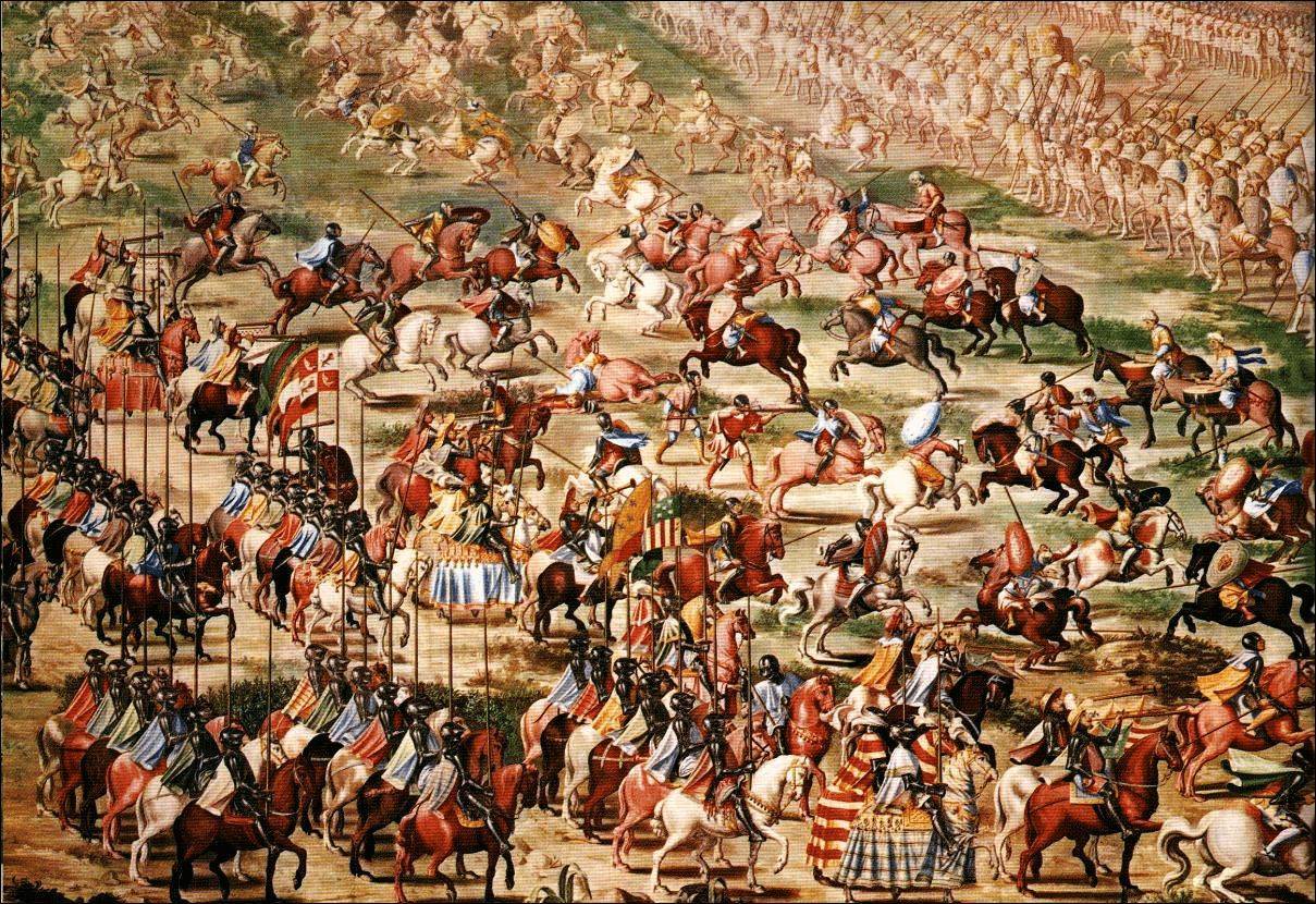 La importancia de esta batalla hizo que, poco tiempo después, se pintase un lienzo de grandes dimensiones que reflejase los detalles de la contienda. Así lo describe el arquitecto Juan de Herrera: