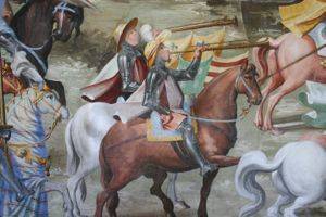 Esta pintura antigua fue restaurada en 1582 por Fabricio Castello, por cuyo trabajo recibió 1.030 reales: “por la pintura que hizo en un lienço grande de la guerra de Granada, conforme a la orden que se le dio, renovando la dicha pintura y haciendo de nuevo lo que fue necesario en ella”.