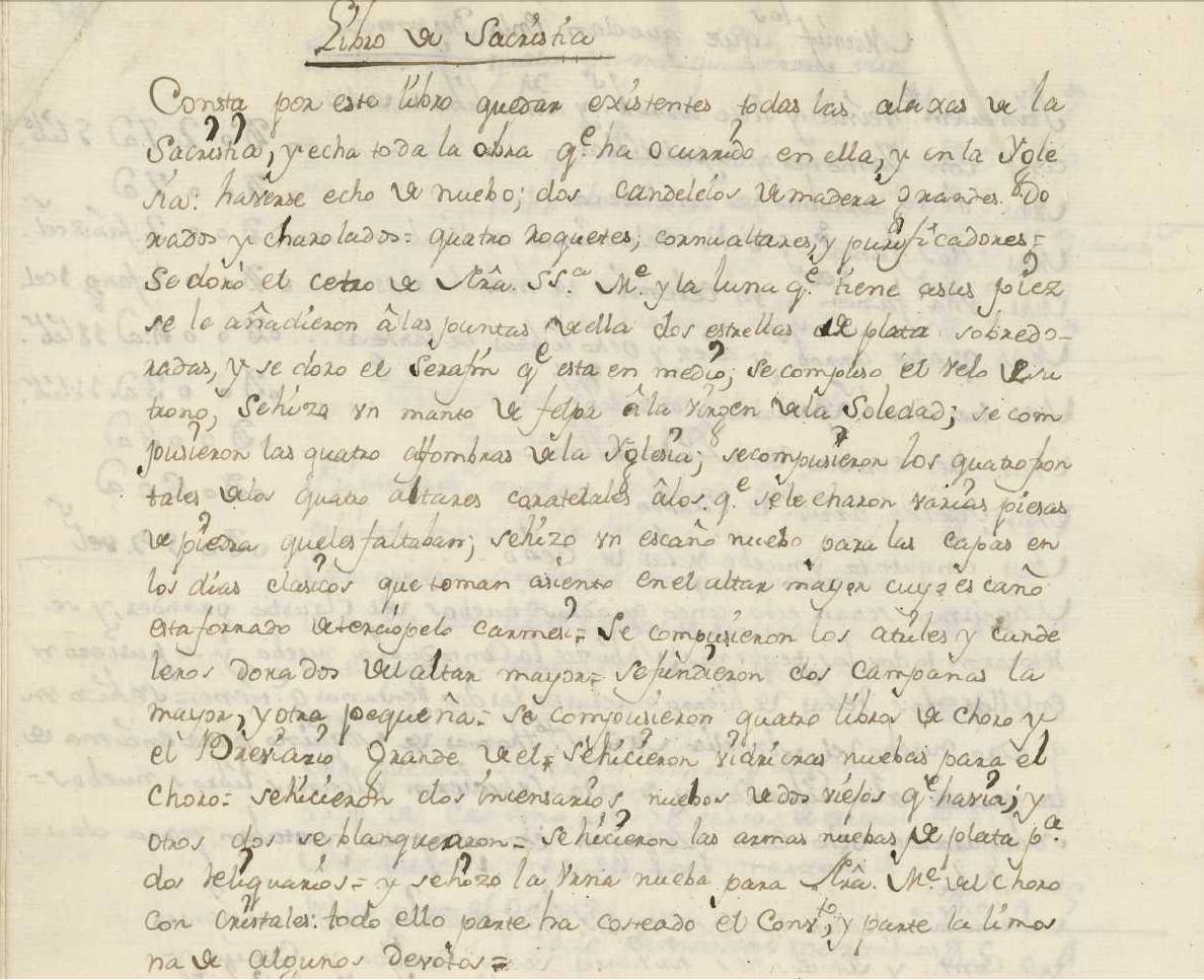 In the 18th century, the convent of Nuestra Señora de la Merced had two bells, one large and one small, and a collection of chant books with which liturgical services were officiated in the choir.