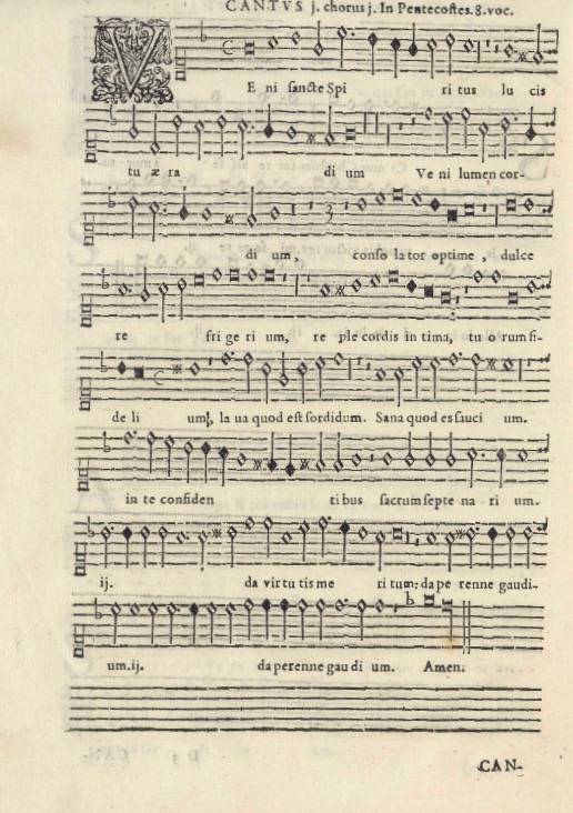 - El himno de Tercia [Veni Creator Spiritus] se canta a 4 [voces] y la misa, la secuencia a 8 [voces].
