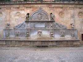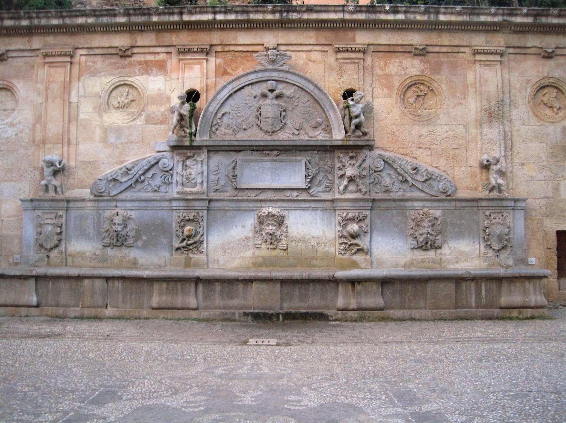 The fountain of Charles V, located in the gardens of the Alhambra, is the most notable example of this type of fountain preserved in Granada. It was built in 1545 by the Italian Nicolao da Corte, based on the designs of Pedro de Machuca, and financed for by Íñigo López de Mendoza, 3rd Marquis of Mondéjar and 4th Count of Tendilla, Captain General of the Alhambra.