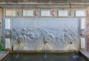 Actualmente, en el jardín de los Adarves encontramos una fuente que sirvió de segunda taza a la fuente de los Leones desde comienzos del siglo XVII y que fue colocada aquí en 1949.