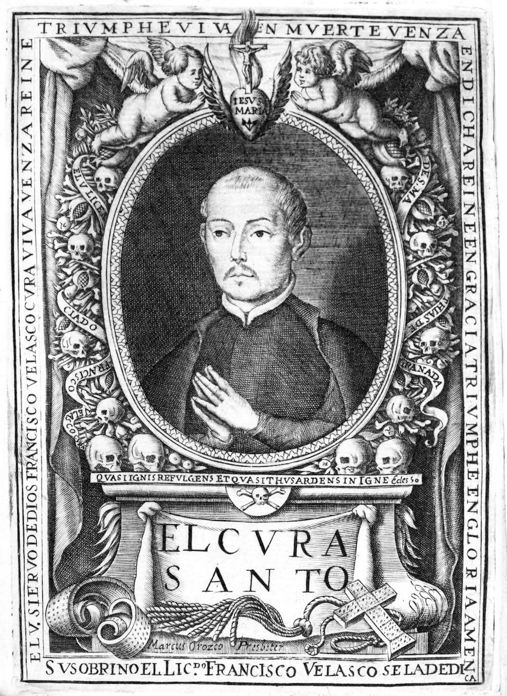“Ya se auía dado a conocer en Granada bastantemente; ya tenía introducción, y amigos que aplaudían su entendimiento, su capacidad, sus agudos dichos y urbana y entretenida conversación, su buena voz, que acompañava la destreza de un instrumento, y la que tenía en la espada, que los humos de soldado aún no estaban extinguidos con las obligaciones de eclesiástico”. El arzobispo Pedro Vaca de Castro y Quiñones le nombró rector del hospital de San Juan de Dios y, poco tiempo después, se le dio el curato de la iglesia de los Santos Justo y Pastor. La crónica dice de esta etapa que sus virtudes se vieron empañadas: “con los humos de muy galán, y muy valiente y no realçadas con el fino amor de Dios, como convenía, y huviera aquí cumplido con el nombre de los Santos de su curato, siendo Justo y Pastor, si no le tuvieran notado sus feligreses destos dos defectos... las travesuras del licenciado Francisco Velasco, que no a motivado a tocar estos puntos tan esenciales a los curas, nunca llegaron a este perdido exceso ni a merecer esta censura tan justa que por esto dixe de propósito arriba quando dibujé sus buenas propiedades de cura, que estauan empañadas con aquella nota, no dixe borradas”. Nos oculta su biógrafo esos “dos defectos”, a los que parece hacer también alusión el perfil biográfico de Francisco de Velasco publicado en la Gazetilla curiosa o Semanario granadino de lunes 29 de octubre de 1764 (papel XXX):