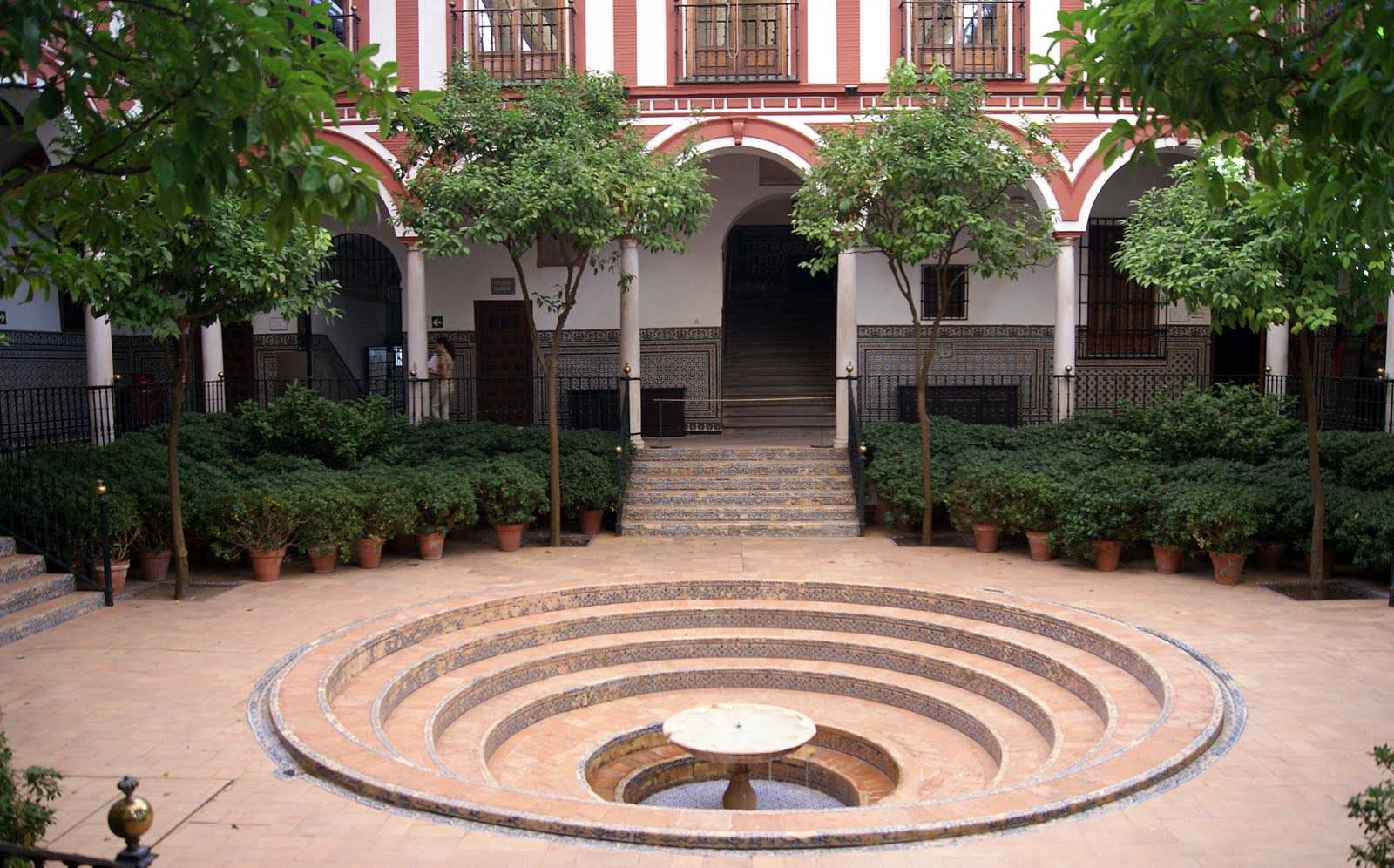 In 1683, a fountain designed by Bernardo Simón de Pineda and carved by the master stonemason Francisco Rodríguez Escalona was placed in the centre of the courtyard of the Hospital de los Venerables Sacerdote in Seville. His original proposal provided a solution to the hospital's water supply problems and became an important decorative, acoustic and soothing element in the harshness of Seville's summers.