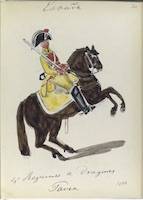 - “Ropas y vestidos que corresponden a los porteros de esta ciudad en el traje de golilla, con que la sirven, practicando lo propio con las libreas de los clarines y timbales, asalariados criados que la preceden y asisten en todas sus públicas concurrencias, y porque estos no eran bastantes ni los más diestros al aplauso de tanto día, discurrió la ociosa solicitud del señor intendente corregidor escribir como hizo a el excelentísimo señor don Feliciano Bracamonte, comandante general de la costa de este reino, para que permitiese licencia de concurrir a solemnizar este festejo a los timbales y clarines de el regimiento de caballería de Andalucía y a los abúes de el de Dragones de Pavía, acuartelado en sus cercanías y en la ciudad de Alcalá la Real… le hizo nueva súplica por la compañía de Granaderos del mismo regimiento, en que también convino”.