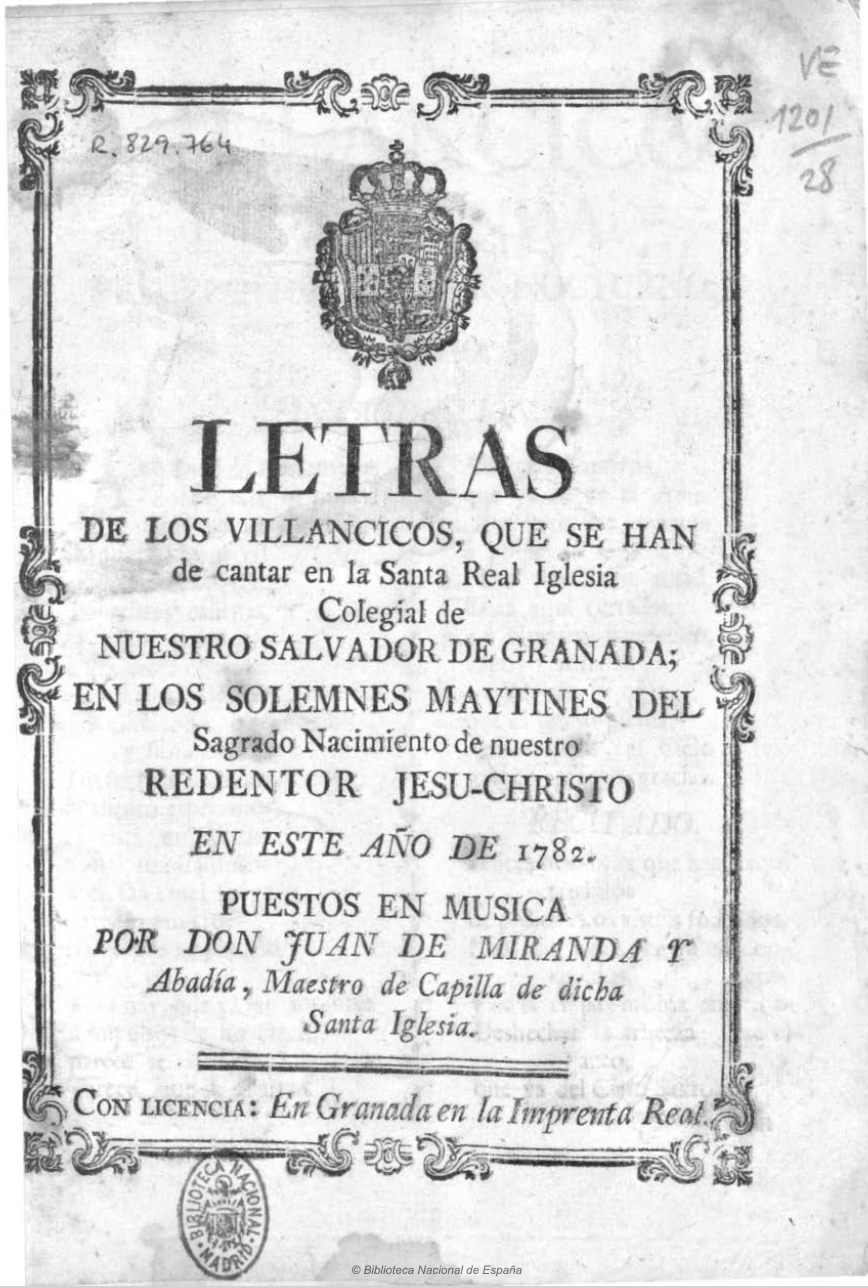 As in the cathedral and in the capilla real of Granada, in the collegiate church of El Salvador, sheets of paper (pliegos) were printed annually with the texts of the villancicos that were to be sung at matins on the feast of the Nativity of the Lord.