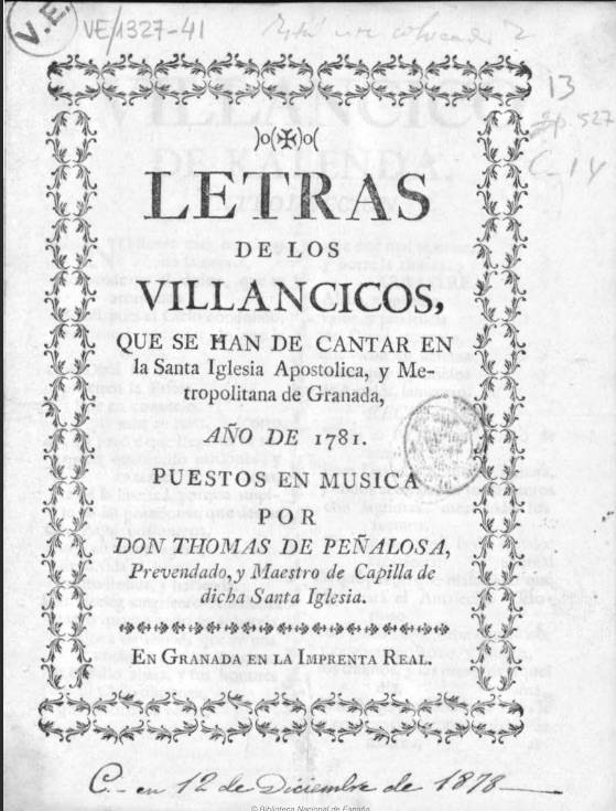 Each year, the cathedral of Granada printed sheets with the texts of the carols for the Christmas matins. For the period in question, 1765-1787, between 800 and 1000 copies were printed, depending on the year.