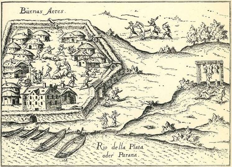 La empresa partió de Sevilla en agosto de 1535 y llegó al Río de la Plata el 6 de enero de 1536. El 2 de febrero (o el 3 según otros historiadores) se fundaba el “Real Asentamiento Santa María del Buen Aire”. Pocos meses después solo sobrevivían 560 hombres a las duras condiciones marcadas por los ataques de los pobladores de la región, el hambre y las enfermedades. La flota de refuerzo no llegaría hasta 1538, en ella iba Julio Veneciano, marinero y trompeta.