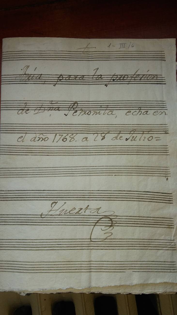 Aria para la profesión de Dª Petronila, echa en el año 1768 a 28 de julio, de Francisco de la Huerta.