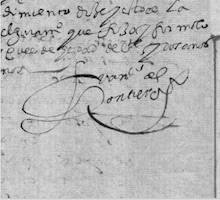 El tercer testigo fue Francisco de Contreras, organista, vecino de la collación de Santa Marina, y al igual que el testigo anterior de 22 años “poco más o menos”. Conocía a Juan Bautista Vitoria desde hace doce años y ratifica que llevó un órgano a Puerto Rico y estuvo allí como organista.