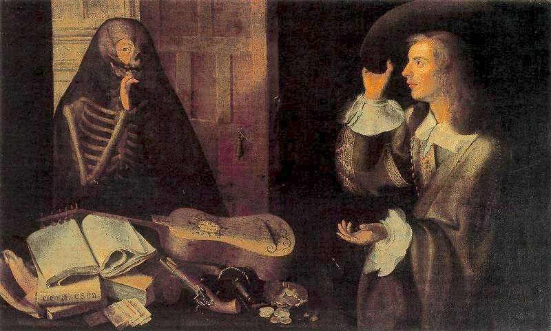 En el cuadro La muerte y el caballero, atribuido a Pedro De Camprobín (1604-1674), pintor asentado en Sevilla, encontramos una guitarra de cinco órdenes representativa de los instrumentos construidos por los violeros andaluces a mediados del siglo XVII (véase recurso). En la pintura de vanitas, los instrumentos musicales representan la naturaleza efímera de la música, pero también al placer sensorial y la vanidad terrenal.