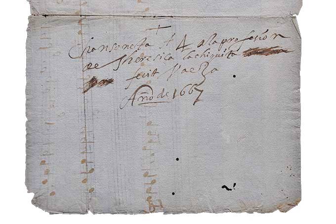El convento de franciscanas concepcionistas de la Santísima Trinidad de Puebla (México) fue uno de los primeros cenobios femeninos de la ciudad. Fundado en 1619, mantuvo una importante actividad musical a cargo de las monjas de esta comunidad. La colección Sánchez Garza ha preservado una parte importante de sus fondos musicales, en cuyas partituras se recogen los nombres de sus maestras de capilla y de las músicas cantoras e instrumentistas encargadas de su interpretación. Uno de los villancicos de esta colección, compuesto por un ministril de la catedral de Puebla, Juan de Baeza Saavedra, está dedicado a la toma de velo de un miembro de esa congregación, Teresa Baeza, en 1667. Este compositor procedía de Sevilla, donde había formado parte de la capilla de música de la colegiata del Salvador entre 1657 y 1659, cuando decide trasladar su residencia al Nuevo Mundo. Teresa probablemente fuera la hija del compositor y se trate de una de las monjas músicas del convento con este nombre, ambas contraltos: Teresa de la Santísima Trinidad o Teresa de San Francisco. Como nos dice el texto del villancico, Teresa tenía solo 15 años cuando ingreso en el convento de la Trinidad: “Apenas nuestra Teresa divisó sus quince años cuando con toda su alma dio con su cuerpo en el claustro”. Esta composición, con el título original Cuerdamente te acoges, es para dos tiples, alto (cantado por “Andrea”) y bajo (acompañamiento). En algún momento se le añadió un nuevo texto, Con suavidad de voces, mediante tiras de papel que se pegaron y que con el tiempo se han ido despegando parcialmente (agradezco esta información a Bárbara Pérez Ruiz, facilitada en comunicación privada). Tiene como portada: