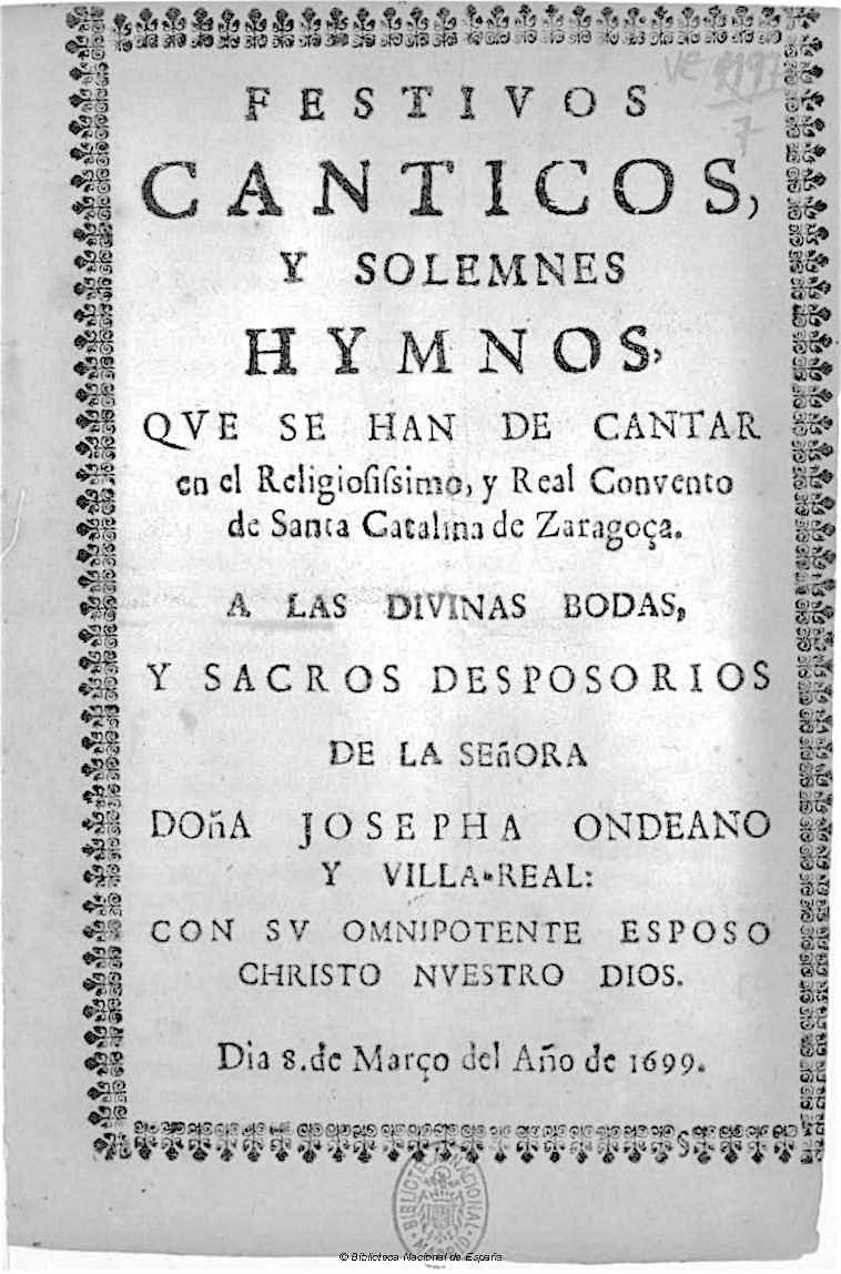Villancicos compuestos para profesión de monjas en el convento de Santa Catalina en Zaragoza (1699)