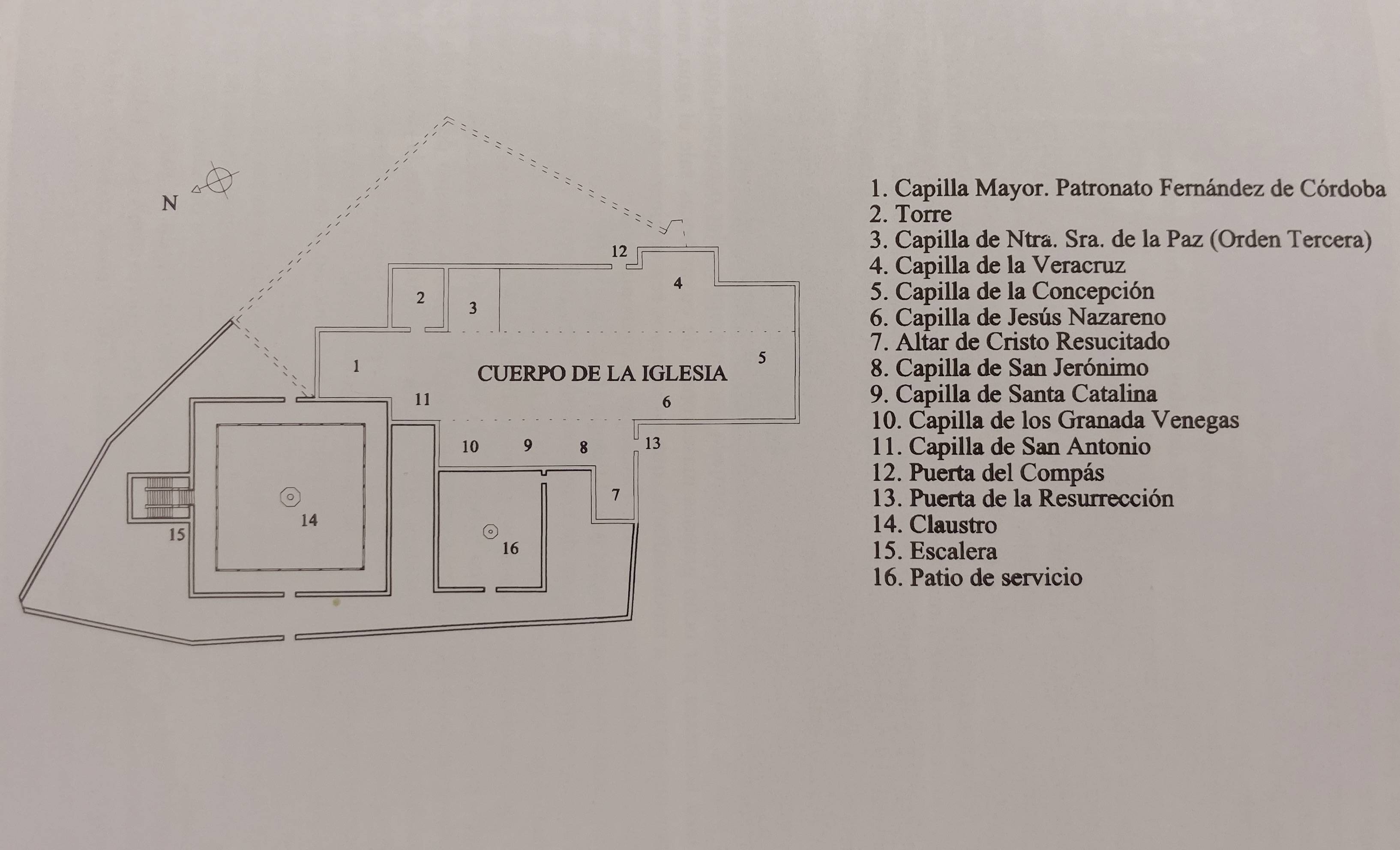 Fray Alonso de Torres [p. 22] también nos proporciona información sobre su magnitud: “La capilla de la Vera Cruz es otra iglesia aparte, aunque unida con la principal, tiene su coro, púlpito y otras capillas que la cercan”.