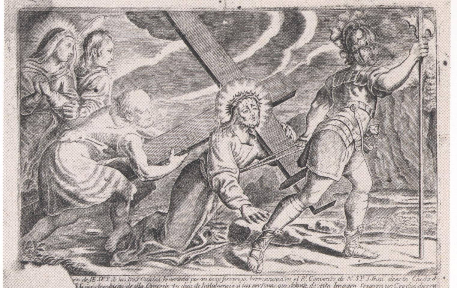 * Cofradía de Nuestro Padre Jesús de las Tres Caídas. Fundada en la década de 1680. Estaba integrada por los cocheros de la ciudad. Se convirtió pronto en una hermandad penitencial que procesionaba, según el padre Lachica Benavides (1764), el Jueves Santo, “a las tres de la tarde”.