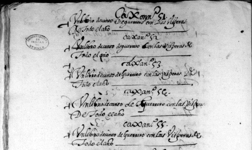 Se trataba, por lo tanto, de dieciséis ejemplares del Liber vesperarum (Roma, 1584) que probablemente fueron adquiridos en Sevilla y que se embarcaban para las Indias cuando habían transcurrido diecisiete años desde su impresión y poco más de uno de la muerte del compositor.