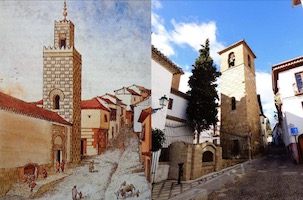 La mezquita al-Murabitin (de los moravitos o ermitaños) fue consagrada al culto cristiano el 7 de enero de 1492, con la advocación de San José. Conserva su alminar del siglo XI, al que se añadió el cuerpo para la instalación de las campanas. La llamada a la oración del almuédano (almuecín o muecín) se repite cinco veces al día y sería uno de los elementos esenciales del paisaje sonoro de la ciudad musulmana. Con frecuencia existe una conexión entre los aljibes y las mezquitas granadinas, situándose muy próximos a ellas, ya que de estas cisternas se obtenía el agua para el consumo y para las abluciones rituales; el de esta antigua mezquita también ha llegado hasta nuestros días, es el conocido como aljibe de San José. El viajero alemán Hieronymus Münzer visitó en 1494 este edificio: "Bajando del Albaicín encuéntrase otra mezquita más pequeña, de [sic] la que el arzobispo [fray Hernando de Talavera] se incautó por orden del rey, dedicándola como templo cristiano a San José y a la Virgen María y dotándola del clero necesario. En su jardín vimos un olivo mayor que una encina, que estaba cargado de aceitunas. Subimos a la torre, y desde su campanario conté un gran número de mezquitas".