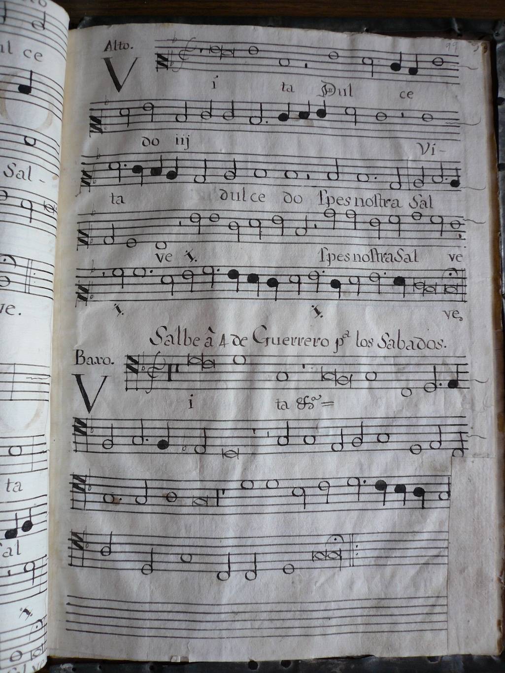 - “Libro de la Salve que compuso el maestro Guerrero”. Posiblemente el libro manuscrito al que me referiré más adelante, copiado en el siglo XVIII.
