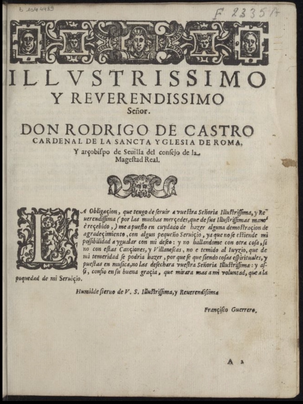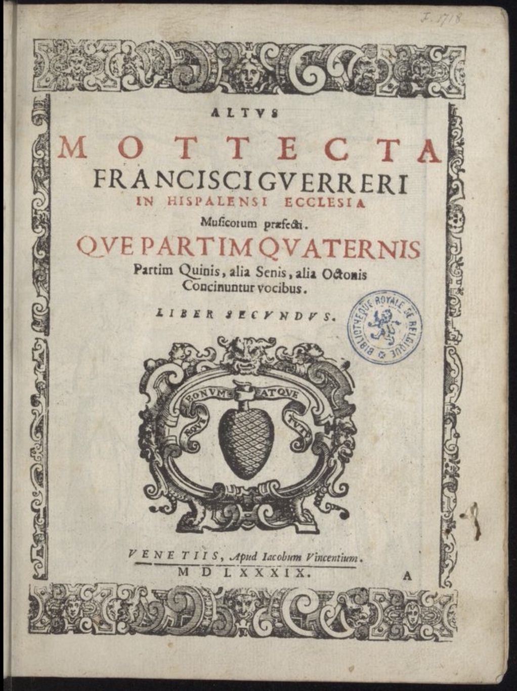 Obras de Francisco Guerrero en la Bibliothèque royale de Belgique