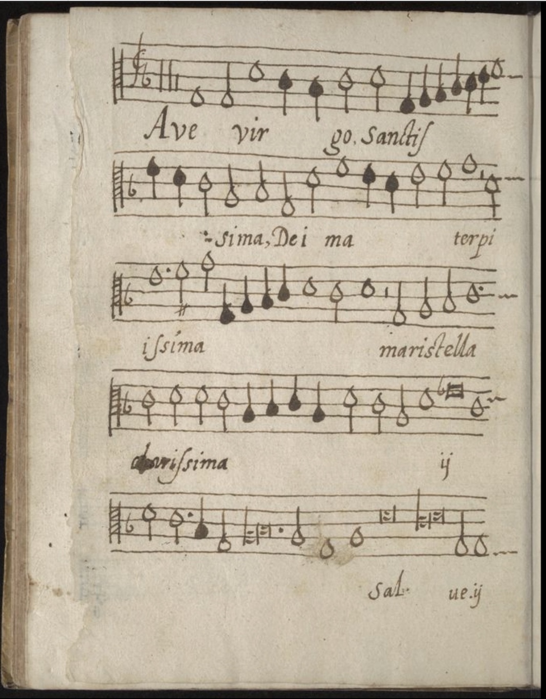 - Ave virgo sanctissima. Este motete se encuentra en los impresos de Guerrero de 1566, 1570 y 1597.