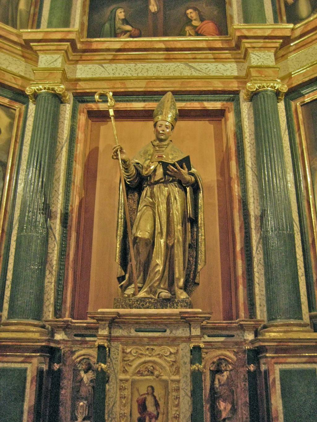 Aprovechamos este evento para proporcionar nueva información sobre una de las valiosas esculturas conservadas en esta iglesia, que se encuentra actualmente en la capilla de San Ildefonso, presidiendo el antiguo retablo de la capilla mayor, trazado por Ambrosio de Vico en 1603. Esta escultura representa a San Ildefonso, titular de la parroquia, y según Antonio Gallego Burín “es del estilo de Bernabé de Gaviria”, el cual había esculpido el relieve en madera que representaba la imposición de la casulla a San Ildefonso y que se encontraba en el encasamiento central del retablo citado. Fue vendida a principios del siglo XX a un particular. También se ha considerado cercana al taller de Pablo de Rojas y su policromía al estilo de Pedro de Raxis.