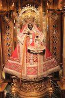 La mañana del día 1, se había dispuesto en el altar mayor de la iglesia un “teatro/trono” para colocar en él las andas y la superficie sobre la que se depositaría la imagen de la Virgen de Guadalupe, la cual se desplazaría a este lugar desde la tribuna en la que habitualmente se encontraba, “dicha nona, a cosa de las ocho de la mañana... en un carro pequeño”, acompañada del prior y otros monjes revestidos de capas y dalmáticas. En este desplazamiento: