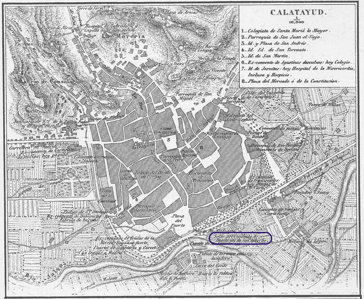 El convento de San Alberto fue fundado por Martín Miravete Blancas, fiscal de la Real Audiencia de Zaragoza, y su mujer Leonor Giménez de Aragüés. El 11 de mayo de 1603 deciden ingresar en religión y donan todos los bienes de Leonor para la fundación de un convento de carmelitas descalzas en Calatayud (Zaragoza). Autorizado fray Francisco de la Madre de Dios, general de los Carmelitas Descalzos, para hacer efectiva la fundación, las primeras monjas no se trasladaron al convento hasta que estuvo finalizado en 1608. Fue su primera priora María Isabel de la Madre de Dios. Tras la exclaustración de 1835, el convento se arruinó y desapareció.