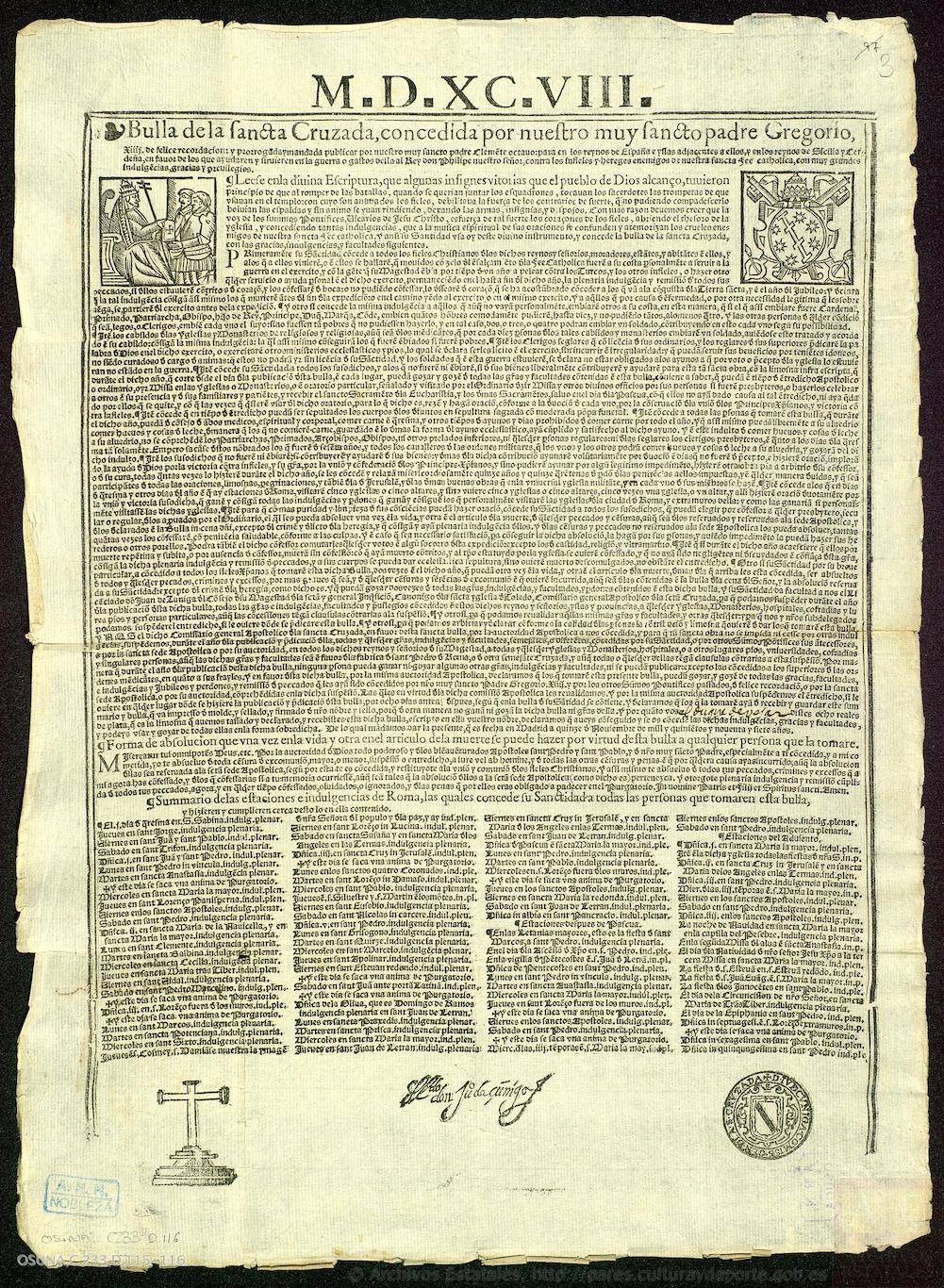 Nota: El primer domingo de Adviento se sitúa entre el 27 de noviembre y el 3 de diciembre. La Bula de Cruzada incorporada en los recursos es de Francisco Diego López de Zúñiga Sotomayor, V duque de Béjar. Está fechada en Madrid el 15 de noviembre de 1597 y rubricada por el entonces comisario general del Consejo de Cruzada Juan de Zúñiga. Ese año el primer domingo de Adviento fue el día 30 de noviembre.