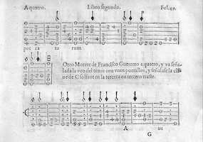 Obras de Francisco Guerrero en El Parnaso de Esteban Daza (1576).