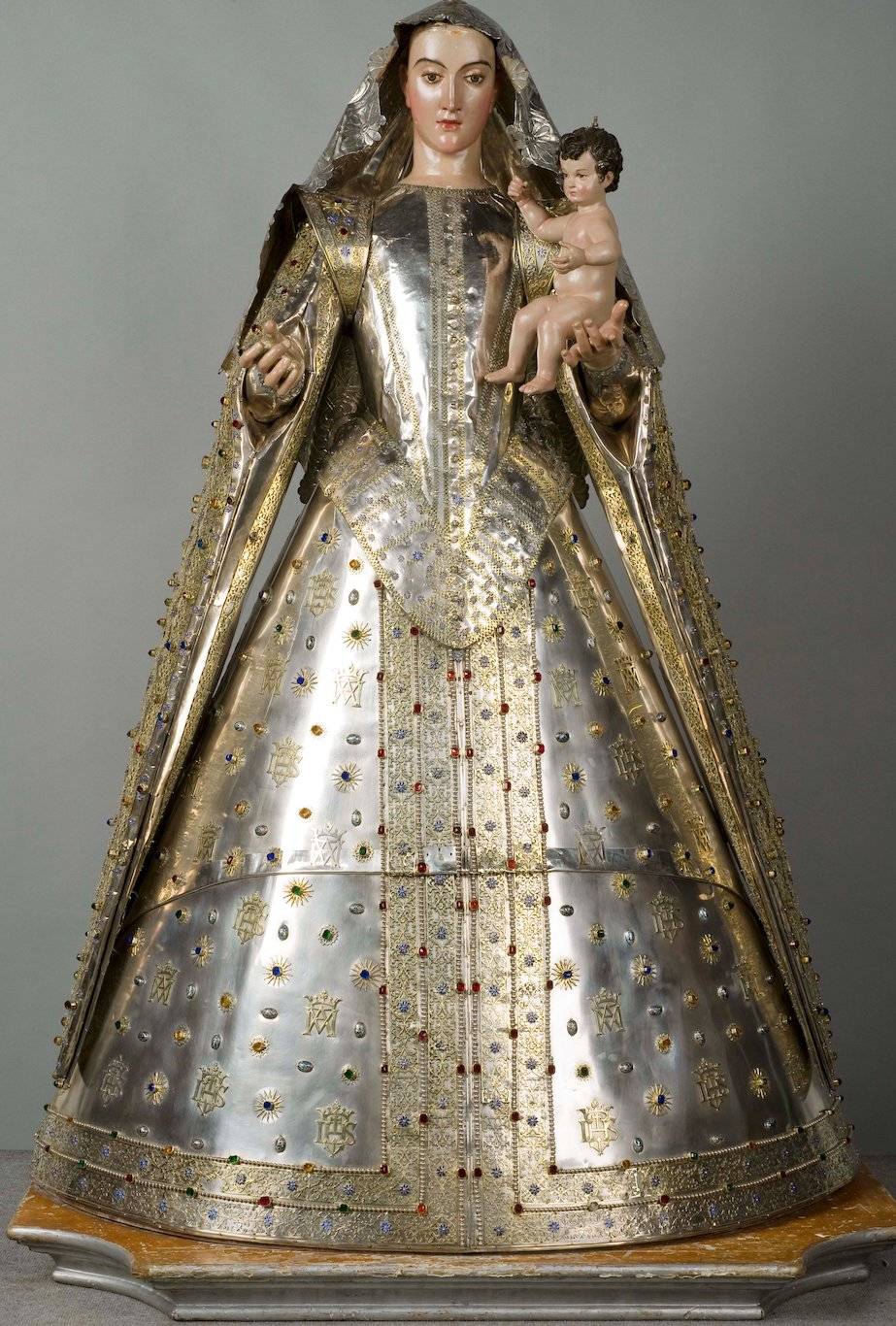 * Cofradía de Nuestra Señora del Rosario. La tradición remonta su antigüedad a 1492, considerando a los Reyes Católicos como sus primeros cofrades, así como a fray Hernando de Talavera, primer arzobispo de la nueva archidiócesis de Granada. Se tiene noticia de una imagen de devoción, regalo del señor de Gor, en 1552. La actual imagen fue enriquecida con un “vestido perpetuo, todo de plata”, adornado con piedras preciosas y perlas, dorados y esmaltes,donado, en 1628, por María Jerónima y Catalina de Aragón, terciarias dominicas, y, en el siglo XVIII, se le añadió brocamantón y rostrillo. Desde 1670, se recoge en los inventarios de esta cofradía unas andas procesionales de plata, “con su cielo y zanefas y remates de plata de martillo”, así como “cuatro horquillas de plata para llevar a Nuestra Señora en las andas en las prozeciones y festividades”. Una lápida de mármol, a la entrada del camarín, señala: “año de [16]75 Lázaro González de Urdanibia siendo hermano mayor hizo unas andas con cúpula, zenefa y remates de plata de martillo que sirvieron hasta el año de 1763 que se hicieron otras”. La referencia a la presencia de la primitiva Virgen del Rosario en la galera del granadino Álvaro de Bazán, marqués de Santa Cruz, en la Batalla de Lepanto, en 1571, solo se recoge en fuentes tardías a partir de mediados del siglo XVIII, por lo que hay que considerarla más que dudosa.