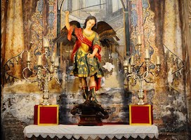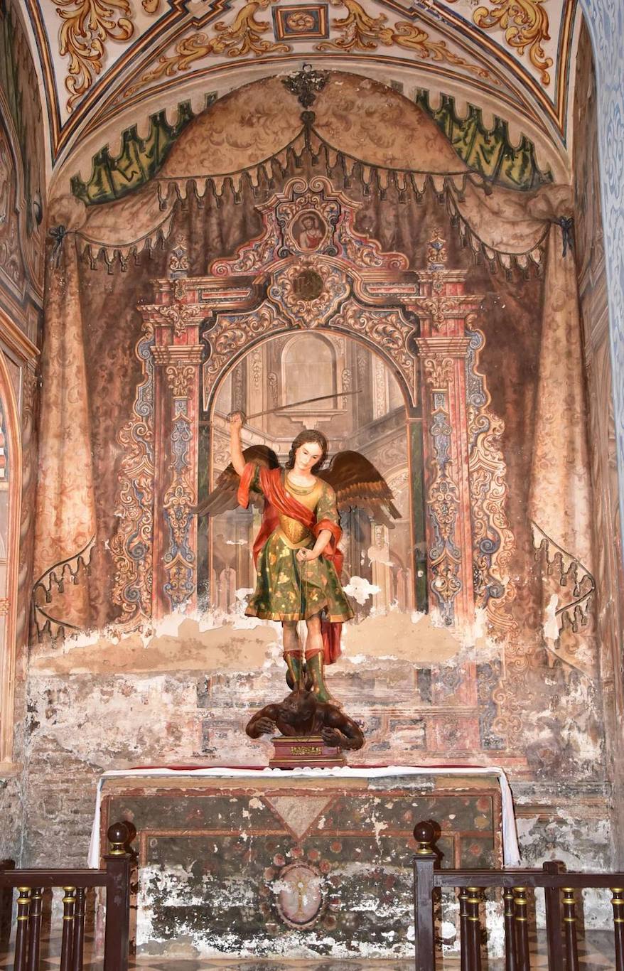 La imagen de San Miguel que hoy se conserva en esta iglesia es de Torcuato Ruiz del Peral y se encuentra ubicada en la antigua capilla dedicada al Cristo de la Redención.